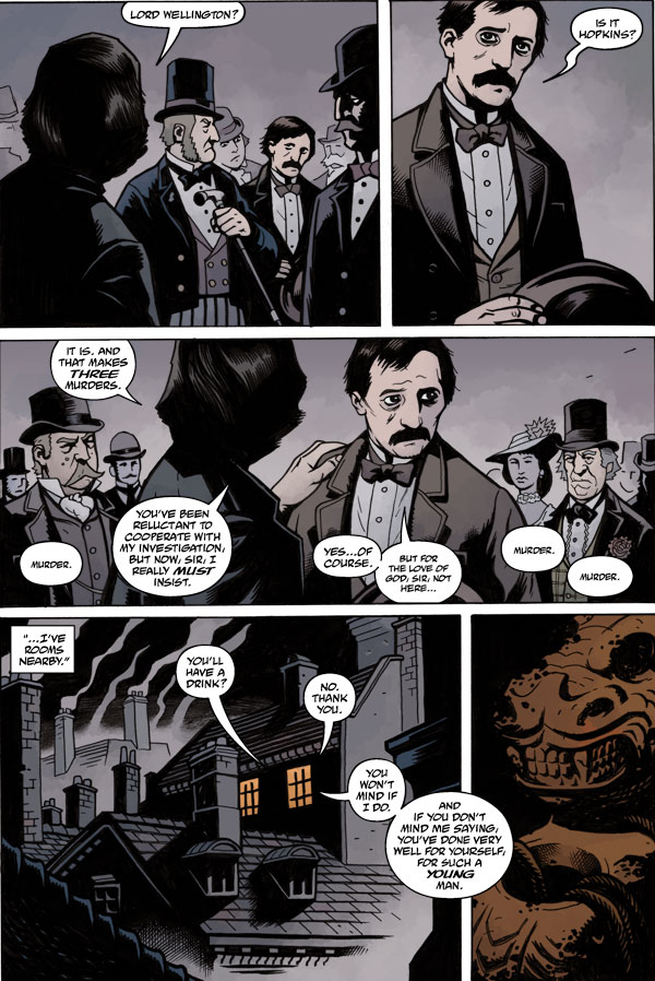 There’s also Victorian London, which I love. I came up with a Hellboy story once where he kind of time-traveled back to Victorian London—it seemed a little goofy to me—but I knew that I wanted to do Victorian London, so it was just a question of making a character who functioned in that world.