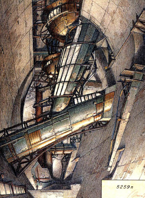 [Image: Lebbeus Woods, from a film treatment for Underground Berlin].