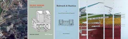I was actually given a copy of Bulwark & Bastion while out at the surreal and extremely remote site of Fort Jefferson, in the Dry Tortugas of Florida, and I read it on the 2-hour boat ride back to Key West. No more than a stapled pamphlet, like something you’d make at Kinko’s, it is, nonetheless, an extremely interesting look at built landscapes of warfare and defense. Unsurprisingly, it includes a history of walled cities and forts from Europe; but—and this topic alone deserves a full-length book from a publisher like Princeton Architectural Press—it discusses in detail the landscape defenses of the American Civil War, including massive brick citadels in Alabama, Maryland, South Carolina, and New York City. Star forts, bastions, casements, field works, and other geometries of assault and counter-attack are all illustrated and diagrammed, and they’re followed by a glossary of architectural defensive terms. Thoroughly enjoyable, in particular for anyone interested in military history.