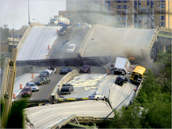 After yesterday’s bridge collapse in Minneapolis – a bridge my sister and her family drove across everyday – the decaying state of American infrastructure is becoming all the more apparent.