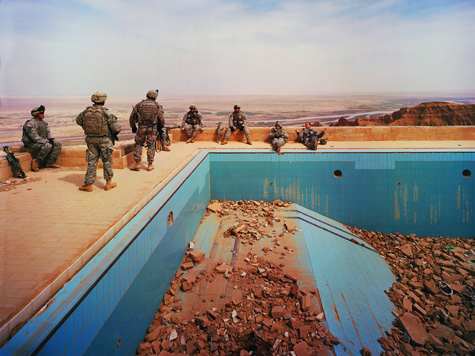 [Image: Ruined swimming pool at Uday’s Palace, Jebel Makhoul, Iraq (2009); photo by Richard Mosse].
