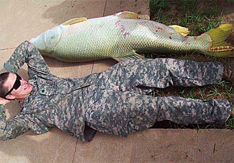 [Image: Tigris Salmon caught at Camp Victory Base, measuring 5 feet 10.5 inches and weighing 105 lbs. Image courtesy of the U.S. Army].
