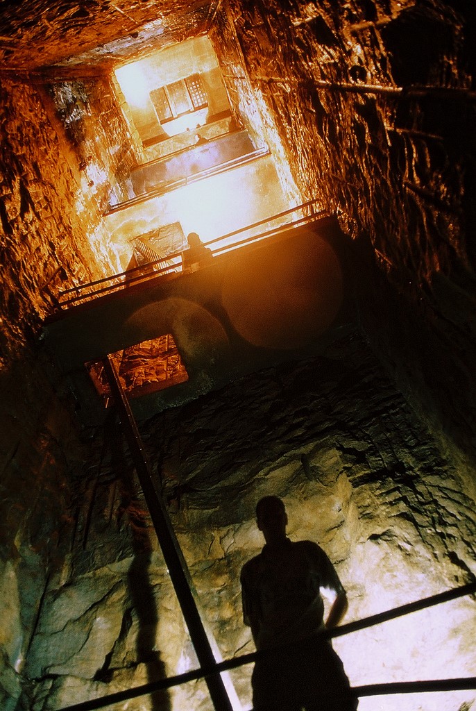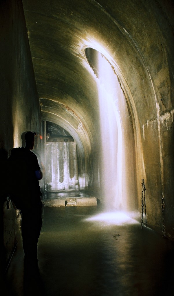 [Image: An artificial waterfall below the surface of the earth, photographed by Siologen].