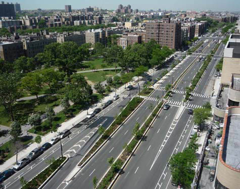 [Image: The Bronx Grand Concourse, looking north from 161st Street; photo by Katie Holten].