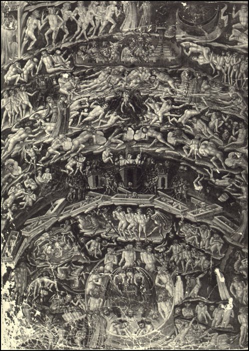 Terraced, pinnacled, travelling forever downward, the ledges, cities and basements of hell are furnished with sloughs, gorges and deserts; there are cities, rivers of boiling blood, lagoons of scalding pitch, burning deserts, thorny forests, ditches of shit and frozen subterranean lakes. Every kind of sin, and sinner, is catered for. Here, descending circle by circle, like tourists to Bedlam, came Dante and Virgil. Following them, at least through Dante’s poem, came Botticelli.