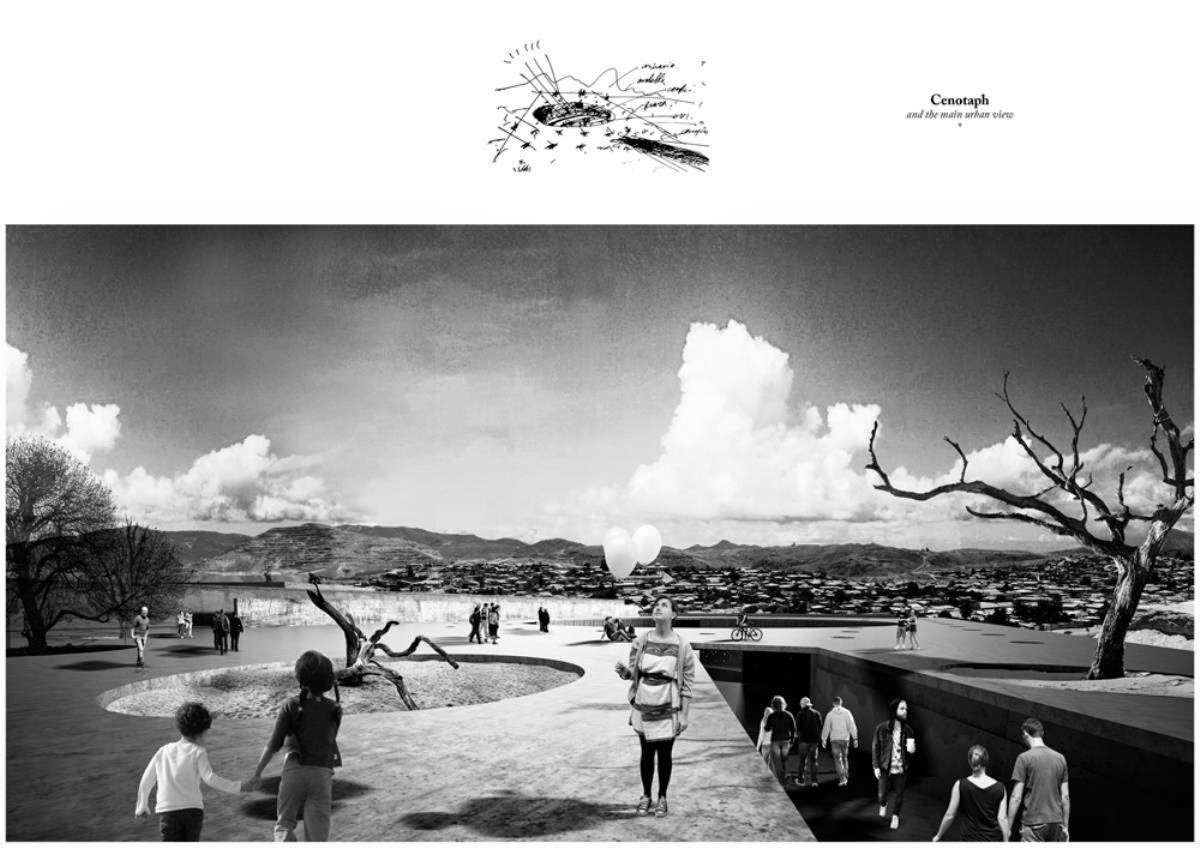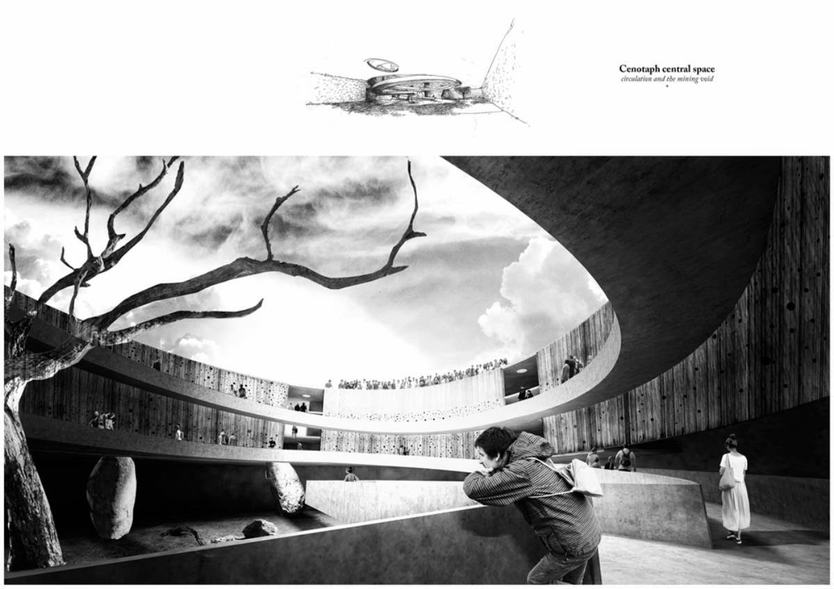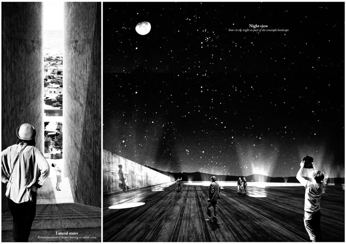 Called “Mining Cenotaph,” it imagines an “occupation” of the tailings piles that have become a toxic urban landmark and a spatial reminder of the region’s economic exploitation.