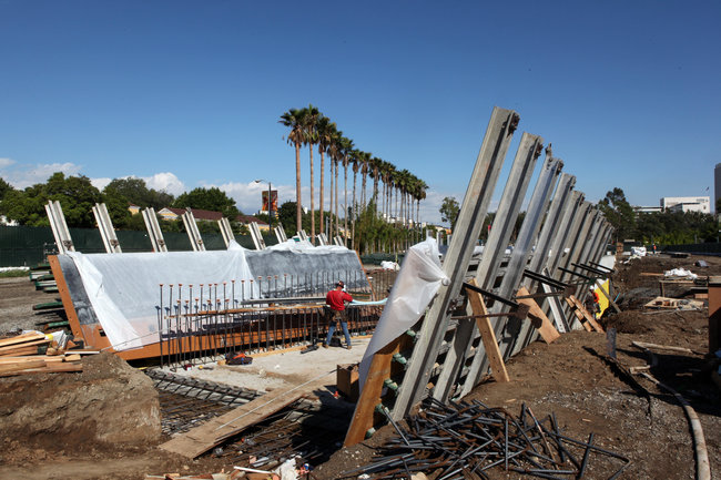 This same sort of awe at the mis-fit between an object’s size and its urban context arose a few years ago when a somewhat underwhelming art project by Michael Heizer was hauled, street by street, to LACMA; and it then happened again when the Space Shuttle made its slow way through Los Angeles back in October 2012.