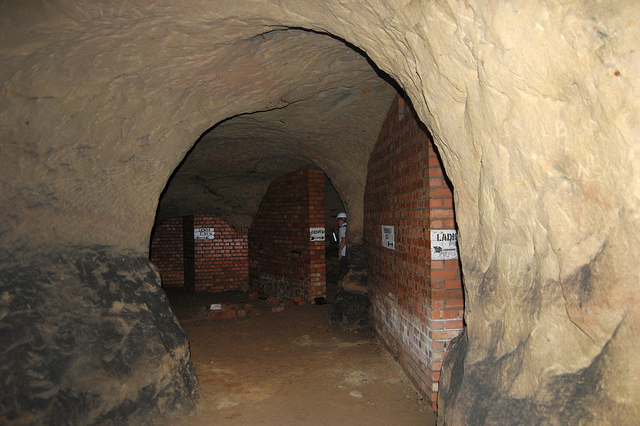 Typical, as well, for these types of pub caves, we found ventilation and delivery tunnels leading back up to the surface, and the walls themselves are lined with long benches, perfect for sitting below ground and, provided you have candles or a flashlight along with you, enjoying a smoke and a pint of beer. As Tony Waltham explains, pub cellars often include “perimeter thralls,” or “low ledges cut in the rock,” normally used for storing kegs and barrels of beer but quite easily repurposed for a quick sit-down.