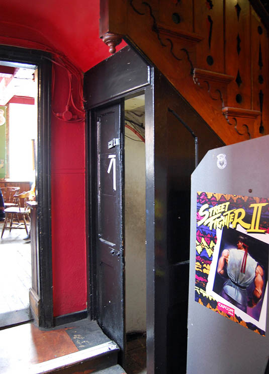 Leaving the mall behind, and maintaining a brisk pace, David took us further into the city, where our next stop was the Old Angel Inn, another pub with an extensive cellar of caves, in this case accessed through a deceptively workaday door next to an arcade game.