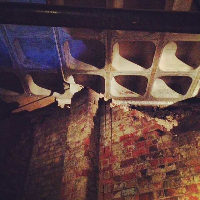 [Image: Brick pillars below Nottingham; photo by BLDGBLOG].
