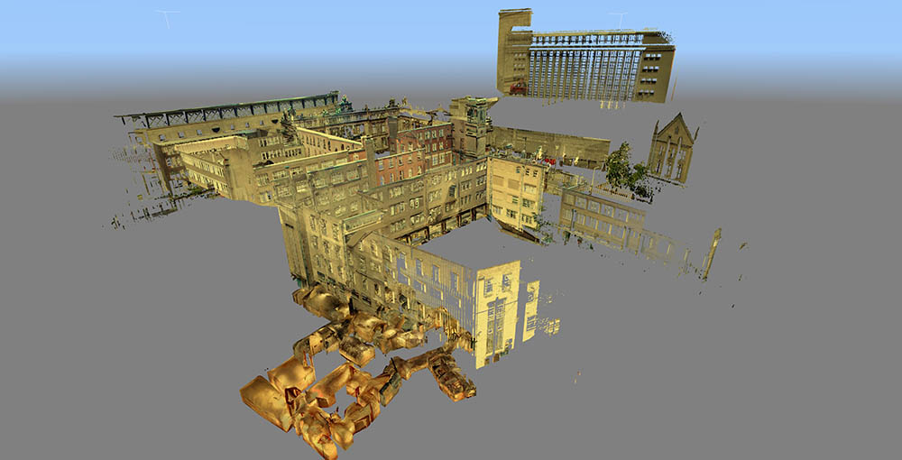Serving as something of the ultimate proof that Nottingham is a city of overlooked doors that lead into the underworld, there were two locked doors—one of which (the black door, near the sidewalk) appears in the photo, above, another of which, on a street nearby, leads down into the Peel Street Caves—simply sitting there on the sidewalk that, if opened, will take you down into extensive and now defunct sand mines. David’s laser-scans of these for the Nottingham Caves Survey are absolutely gorgeous, as you can see, below.