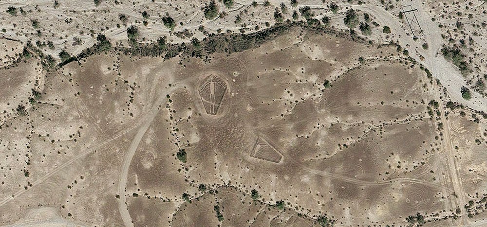 After reading an article about the “Blythe geoglyphs”—huge, 1,000-year old images carved into the California desert north of Blythe, near the border with Arizona—I got to looking around on Google Maps more or less at random and found what looked like a ghost town in the middle of nowhere, close to an old mine.