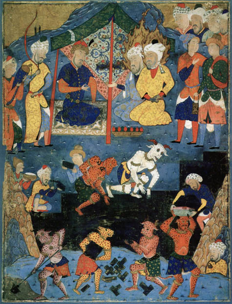 [Image: Constructing the wall of Dhul-Qarnayn, mythic isotope to Alexander’s Gates].
