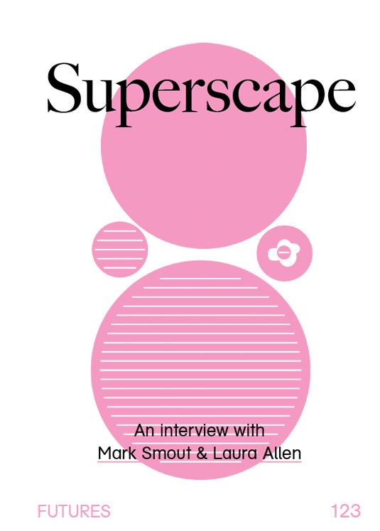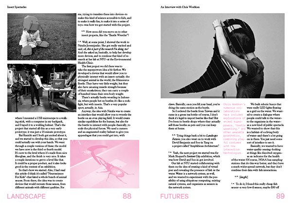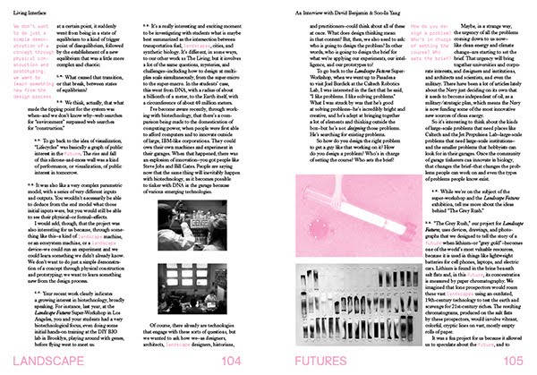 [Images: Interview spreads from Landscape Futures; book design by Everything-Type-Company].