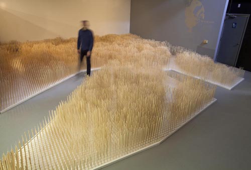 Working with the Atacama Desert Center and students from the Catholic University in Santiago, architect Rodrigo Pérez de Arce is overseeing the creation of models for a large-scale complex of structures, the Fog Garden, that would collect enough water to both support a garden and satisfy the needs of a nearby village. This exhibition is the first time these structures have been displayed, and along with sample building materials and documentation, form an archive that is important to artists, architects, and scientists.