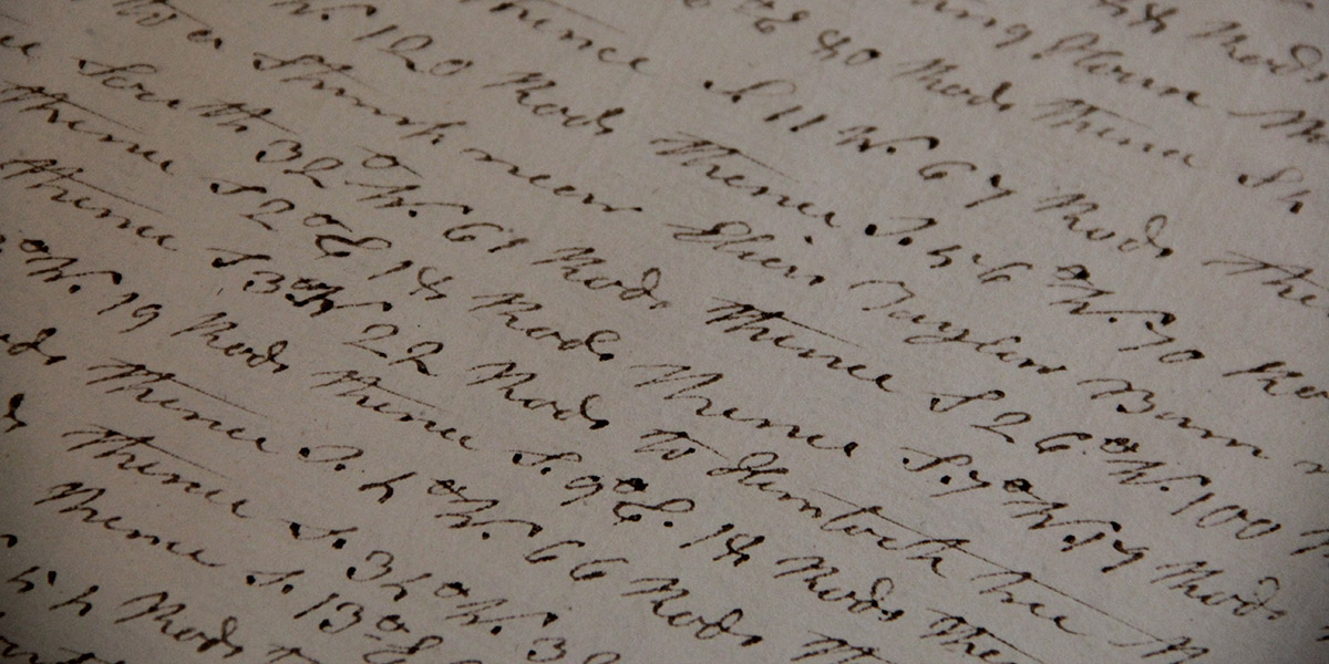 [Image: Zooming into survey descriptions of rods and chains; photo by Geoff Manaugh].