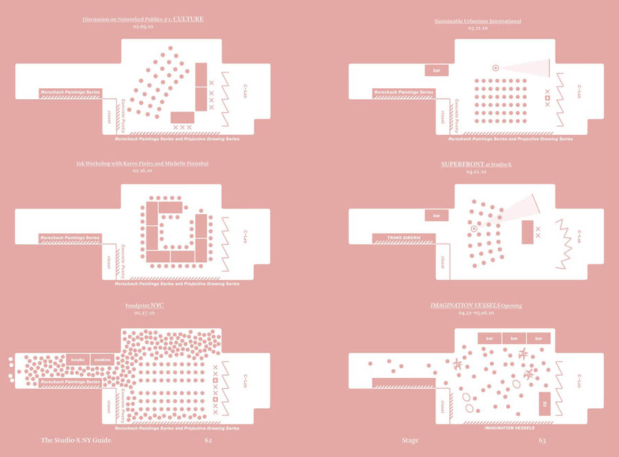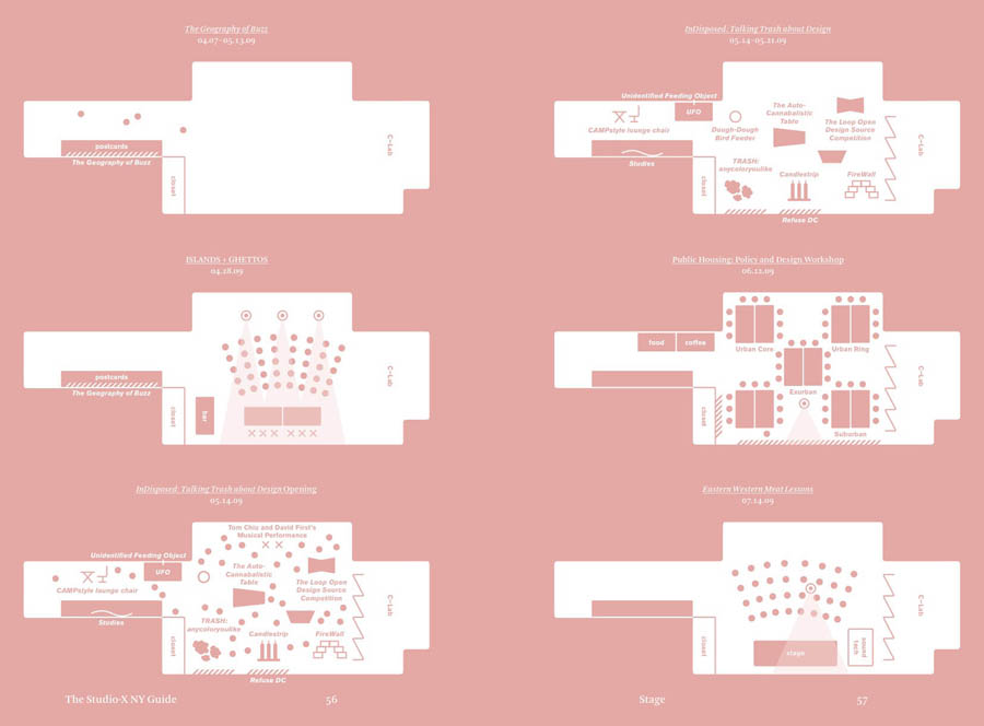[Images: Spatial formats for events at Studio-X NYC, from Studio-X Guide to Liberating New Forms of Conversation].