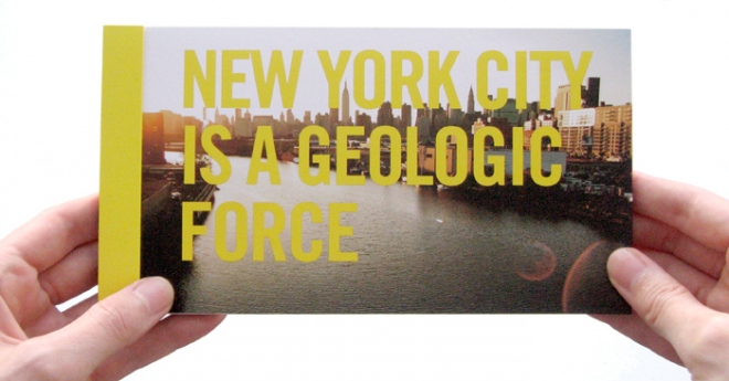 Next week, meanwhile, we will be hosting a launch party for Smudge Studio‘s new pamphlet, Geologic City, a look at the rocky underpinnings of New York, both temporary & abstract (gold reserves, fiber optics, magnetic strips on subway cards) and massively real (bedrock, landslides, urban mineralogy). Jamie Kruse and Elizabeth Ellsworth of Smudge Studio—co-authors of the blog Friends of the Pleistocene—will guide attendees through the pamphlet, as well as through the deep time of the city, utilizing Studio-X NYC’s 16th-floor windows overlooking southwestern Manhattan and the Hudson River to point out specific sites of geological influence on New York itself.