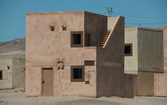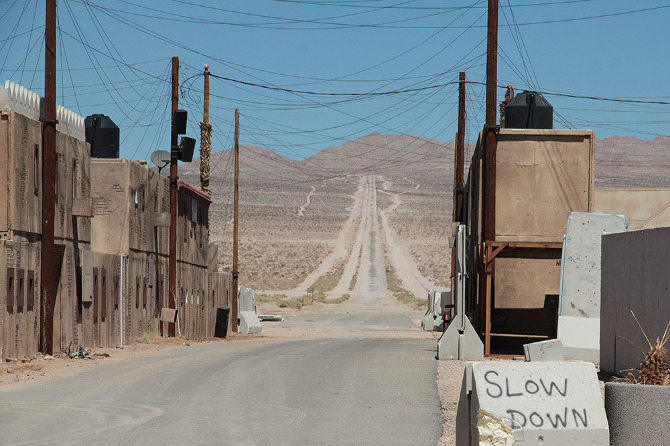 Sprawling and often infernally hot in the summer months, the base offers free tours, open to the public, twice a month. Venue—BLDGBLOG’s ongoing collaboration with Edible Geography’s Nicola Twilley, supported by the Nevada Museum of Art‘s Center for Art + Environment—made the trip, cameras in hand and notebooks at the ready, to learn more about the simulated battlefields in which imaginary conflicts loop, day after day, without end.