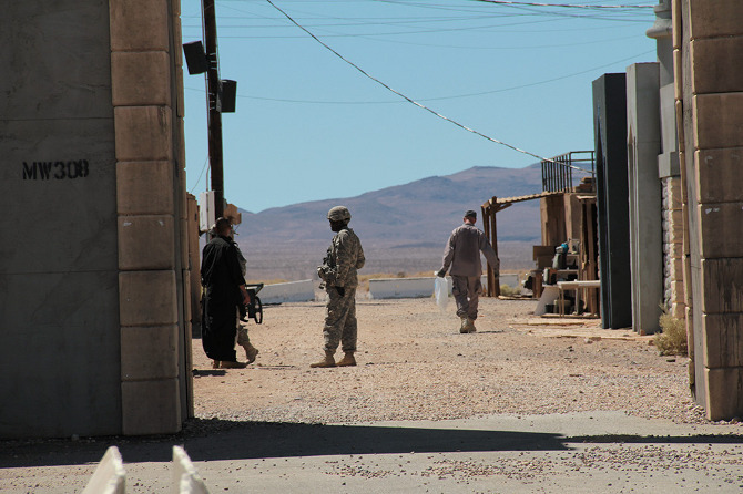 We laughed, said hello, and caught up about a class Rick had been teaching at UCLA about the military defense of L.A. during World War II, through to the present. An artificial battlefield, beyond even the furthest fringes of Los Angeles, Fort Irwin thus seemed like an appropriate place to meet.