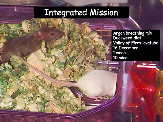 Boston: We grew great duckweed and waterfern. We made duckweed cookies. Gus made a rice and duckweed dish. It was quite tasty. [laughs] We actually fed two mice on it exclusively for a trial period, but although duckweed has more protein than soybeans, there weren’t enough carbohydrates to sustain them calorically.