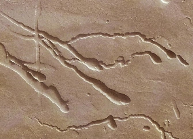 Caves on Mars; images courtesy of NASA/JPL-Caltech/ASU/USGS.