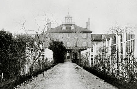 The site did change over time, but it didn’t change all that much. The grounds certainly changed—gardens and ornamental hedges were planted. The most detailed surviving description of the site that I’ve been able to find is from a newspaper article in 1879. It’s a very, very detailed description of the buildings and grounds. We also have a gorgeous watercolor, but it’s undated; the best guess of the archivists and curators who have studied it is that it’s from the middle of the nineteenth century. That doesn’t tell us much, but you can make some educated guesses based on the way the people are dressed in it. We also do have some photographs from the 1880s and onwards.