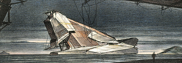 For more images, meanwhile, including much larger versions of all the ones that appear here, don’t miss BLDGBLOG’s Lebbeus Woods Flickr set. Also consider stopping by Subtopia for an enthusiastic recap of Lebbeus’s appearance at Postopolis! last Spring; and by City of Sound for Dan Hill’s synopsis of the same event.