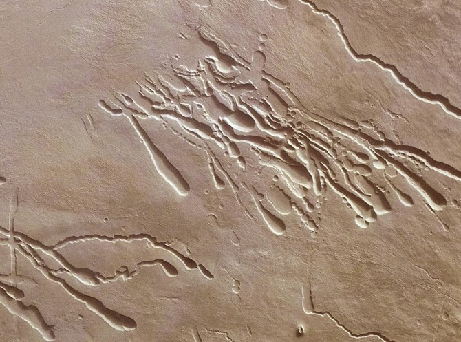 Surface features created by lava tubes on Mars; image via ESA