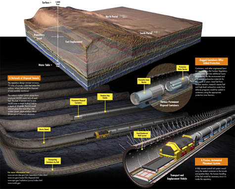 [Image: Yucca Mountain diagrammed; courtesy of the Department of Energy].