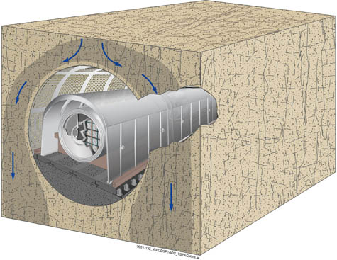 Van Luik: Sealing the repository wouldn’t happen for at least 100 years, so what we have done at this point is basically left that decision for the future. We have done a preliminary design, which uses a heavy concrete mixture—as well as rock rubble for a certain portion—to seal the exits from the main tunnel that goes around and feeds all the smaller tunnels.