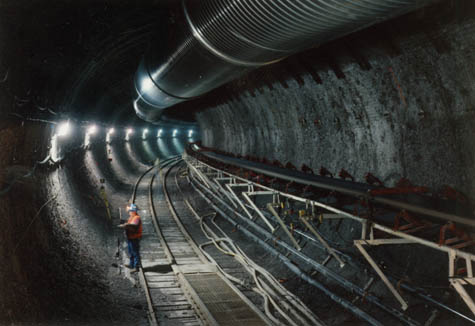 Van Luik: The drifts are each about 600 to 800 meters long. They vary a little bit, depending on where they are in the mountain. We will have 91 emplacement drifts—with an average of about 120 waste packages, set end-to-end, in each drift—to take care of the 70,000 metric tons that we are authorized to have. If we receive authorization to have more than 70,000 metric tonnes, then we’re prepared to go up to 125,000 metric tonnes of heavy metal. That metric tonnage figure doesn’t represent the total weight that goes into the mountain, by the way—it means that the containers have the equivalent of that many tonnes of uranium in them. In other words, 70,000 metric tons is about 11,000 containers that weigh about ten metric tons each, so it’s a huge amount of weight. Each container contributes a significant amount of weight in itself: the steel and the Alloy 22 are very heavy.