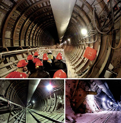[Images: Views inside the tunnels of Yucca Mountain; top photo by Rick Gunn for the Associated Press].