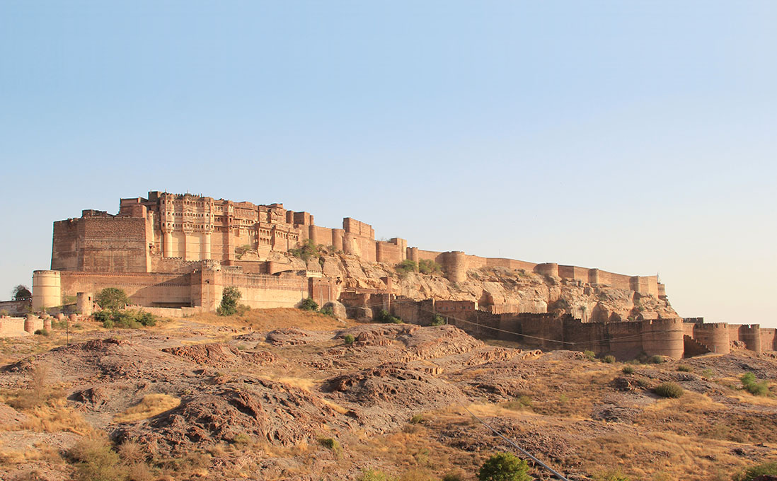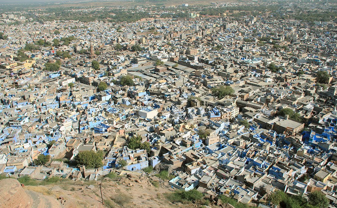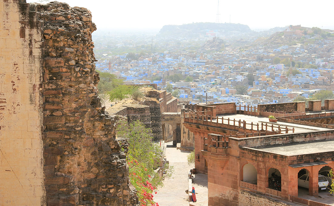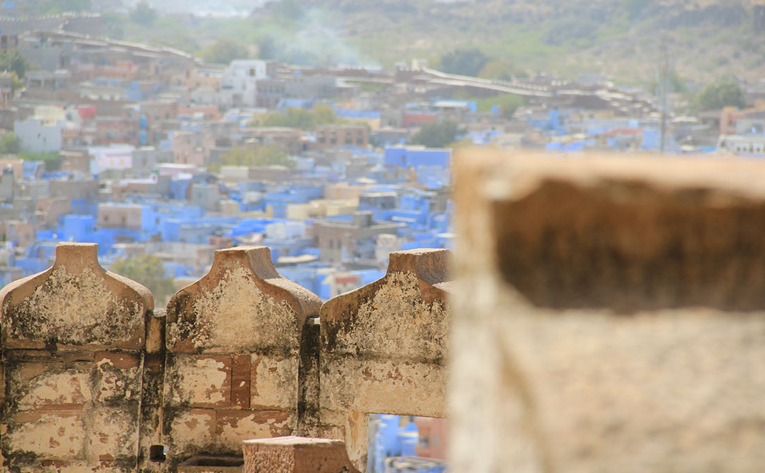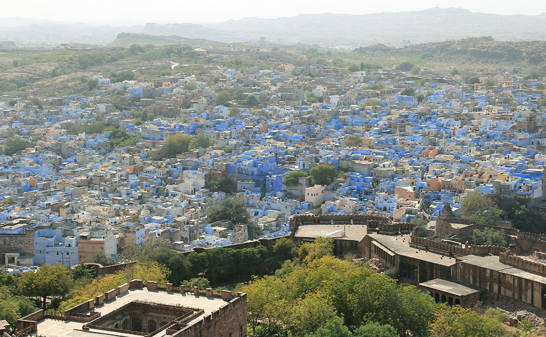 All of it overlooks a sprawling desert city lined with the beautiful blue-washed houses of local brahmins.