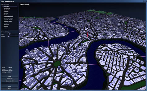 Rather than opt for procedural techniques, game designers usually elect to build their cities by hand, often with startling results. The re-imagined contemporary New York that features in last year’s Grand Theft Auto 4 required a small army of well-paid artists and designers to hand-craft the entire world. Their accomplishment is unmatched, but the cost to the company behind the project is in the tens—and perhaps hundreds—of millions of dollars. To build up a living city from blank polygons is one of the most expensive possible projects in game design.