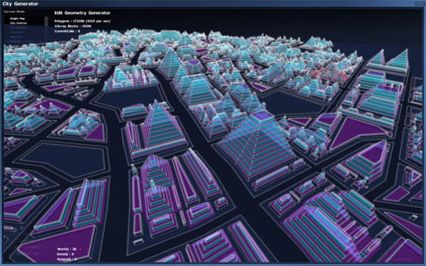 Projects like Shamus Young’s impressive PixelCity, or Marco Corbetta‘s Structure seem ripe for such strange fictions. Corbetta’s system is particularly impressive in its verisimilitude: he aims to create a basic engine for rapidly generating the kinds of cities that games like Grand Theft Auto 4 require, and consequently doing so for much cheaper.
