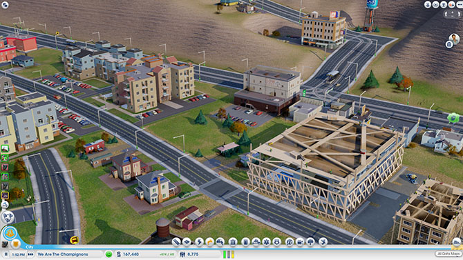 Librande: [laughs] Exactly. So what we do in the game is that we just imagine they are underground. We do have parking lots in the game, and we do try to scale them—so, if you have a little grocery store, we’ll put six or seven parking spots on the side, and, if you have a big convention center or a big pro stadium, they’ll have what seem like really big lots—but they’re nowhere near what a real grocery store or pro stadium would have. We had to do the best we could do and still make the game look attractive.