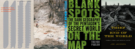Through a combination of publisher review copies and the slow-to-end fire sale at my favorite local bookstore, Stacey’s – they’ve gone out of business and are selling everything at 50% off, including now even the furniture – BLDGBLOG’s home office is awash in books. Since there literally is not enough time left in a person’s life to read all of these, I decided that I would instead start a new, regular series of posts on the blog called “Books Received” – these will be short descriptions of, and links to, interesting books that have crossed my desk. Note that these lists will include books I have not read in full – but they will never include books that don’t deserve the attention. Note, as well, that if you yourself have a book you’d like to see on BLDGBLOG, get in touch – send us a copy, and, if it fits the site, we’ll mention your title in a future Books Received.