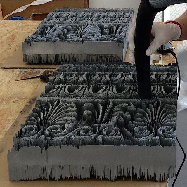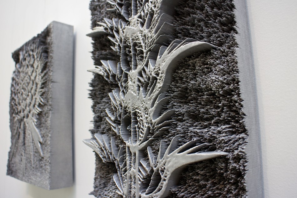 This latter detail – “using tiny gel packs of yeast which burst and fertilize the geotextile” – brings to mind something at the intersection of an improvised explosive device (or IED) and a green roof: you hire Philip Beesley to design a landscape-machine for installation atop a new building downtown, and, over the course of many decades, it vibrates, yeast-bursts, rotates, crawls, and grows through extraordinary cycles of grotesque architectural fertility. A solar-powered landscape of mold and microroots, generating its own soil. Within a few years, the original sculpture it all came from is gone, archaeologically undetectable beneath the vitality of the forms that have consumed it.