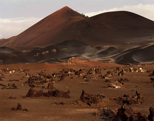 [Image: Simon Norfolk. Ascension Island, South Atlantic. “Looking towards the cinder cone of Sister’s Peak from English Bay Road. On the edge of the Broken Tooth Live Firing Range.”]