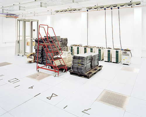 [Image: Simon Norfolk. “BlueGene/L, the world’s biggest computer, at Lawrence Livermore Laboratory, California, USA. It is the size of 132,000 PCs. It is used to design and maintain America’s nuclear weapons.” On his website, Norfolk notes that the computer is used for “modeling physics inside an exploding nuclear warhead.”]