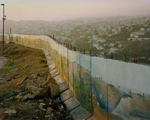 [Images: Simon Norfolk. Top: “Wrecked Ariana Afghan Airlines jets at Kabul Airport pushed into a mined area at the edge of the apron,” from Afghanistan: Chronotopia. Bottom: “The illegal Jewish settlement of Gilo, a suburb of Jerusalem. To deter snipers from the adjacent Palestinian village of Beit Jala (seen in the distance) a wall has been erected. To brighten the view on the Israeli side, it has been painted with the view as it would be if there were no Palestinians and no Beit Jala.”]