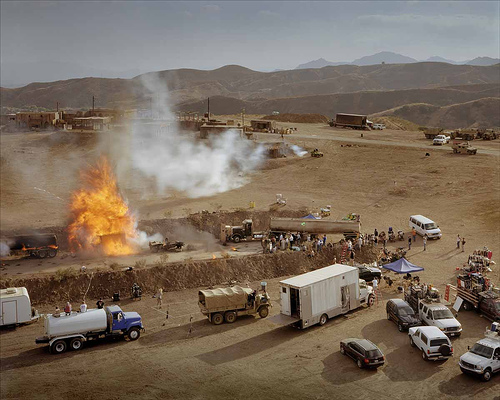 [Image: Simon Norfolk. “A controlled explosion of an American fuel convoy in Iraq being filmed on the set of Over There, a Fox TV production about the life of a US Army platoon in contemporary Iraq. Being filmed in Chatsworth, just north of Los Angeles, Sept 2005.”]