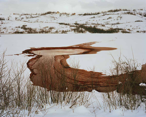 [Image: Simon Norfolk. “Tailings pond of the Petkovici Dam. A mass grave was discovered dug into the earth of the dam and bodies were also thrown into the lake.” From Bleed.]