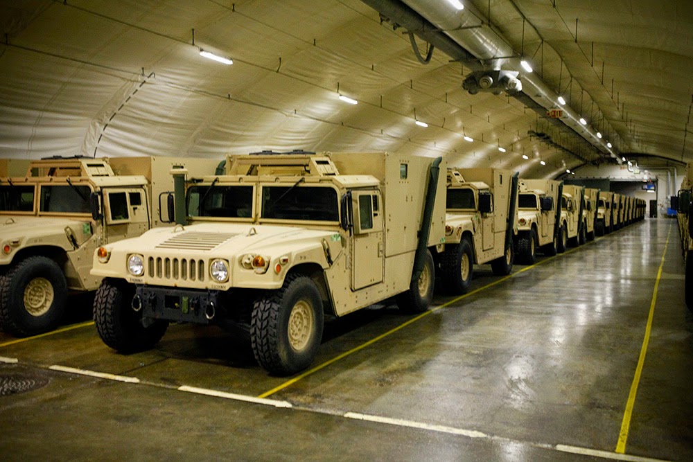 [Image: “Humvees are stored inside the Frigaard Cave in central Norway. The cave is one of six caves that are part of the Marine Corps Prepositioning Program-Norway, which supports the equipping of Marine Expeditionary Brigade consisting of 15,000 Marines and with supplies for up to 30 days.” U.S. Marine Corps photo by Lance Cpl. Marcin Platek].
