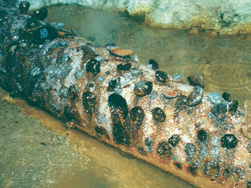 These then build up into reef-like deposits through a process analogous to 3D-printing: “Electron microscopy revealed small-scale, fiber-like crystals arranged into lines growing outward from the steel surface. The shells appear to be formed layer by layer, with crystal size and composition varying across layers.”