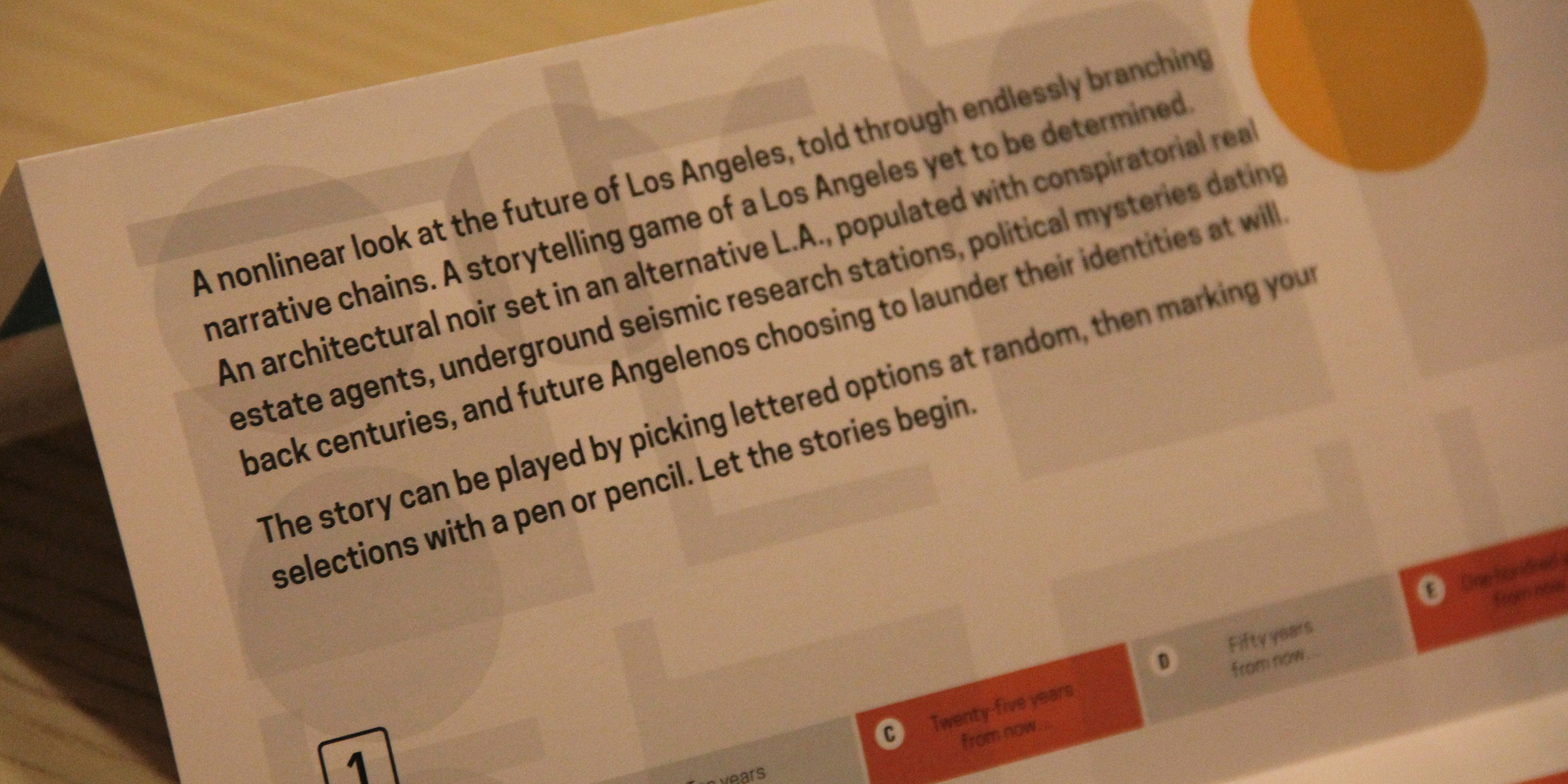 [Images: L.A.T.B.D.‘s accompanying exhibition text, designed by