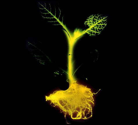 [Image: A bioluminescent tobacco plant, via