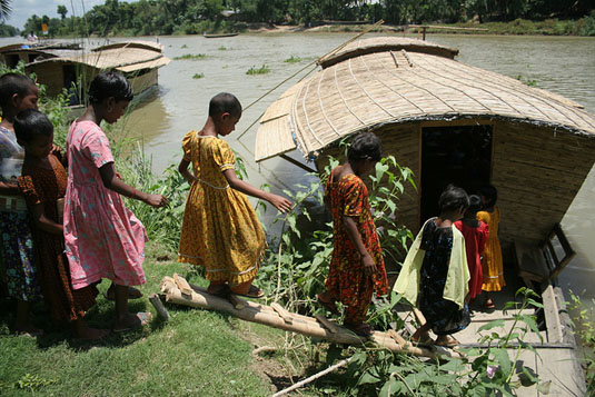 [Image: A riverboat library in Bangladesh; image courtesy of the Gates Foundation].