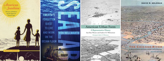 12) American Sunshine: Diseases of Darkness and the Quest for Natural Light by Daniel Freund (University of Chicago Press) — Freund’s book is a delightfully idiosyncratic look at the “quest for natural light” in American culture, from the earliest use of tanning beds as a kind of surrogate sun to the mainstream acceptance of “light therapy” as a cure for Seasonal-Affective Disorder, and from the marketing of climate tourism to the development of specialty lighting rigs for use in industrial food preparation. Freund explains in his introduction that the book was motivated by three otherwise unrelated historical figures—Akhenatan, Vitruvius, and Linnaeus—all of whom represent for Freund “the universality of sunlight as a subject for consideration.” The results are this unique look at the confluence of personal health, urban design, and near-religious popular beliefs about the purifying power of sunlight over roughly 150 years of American culture.